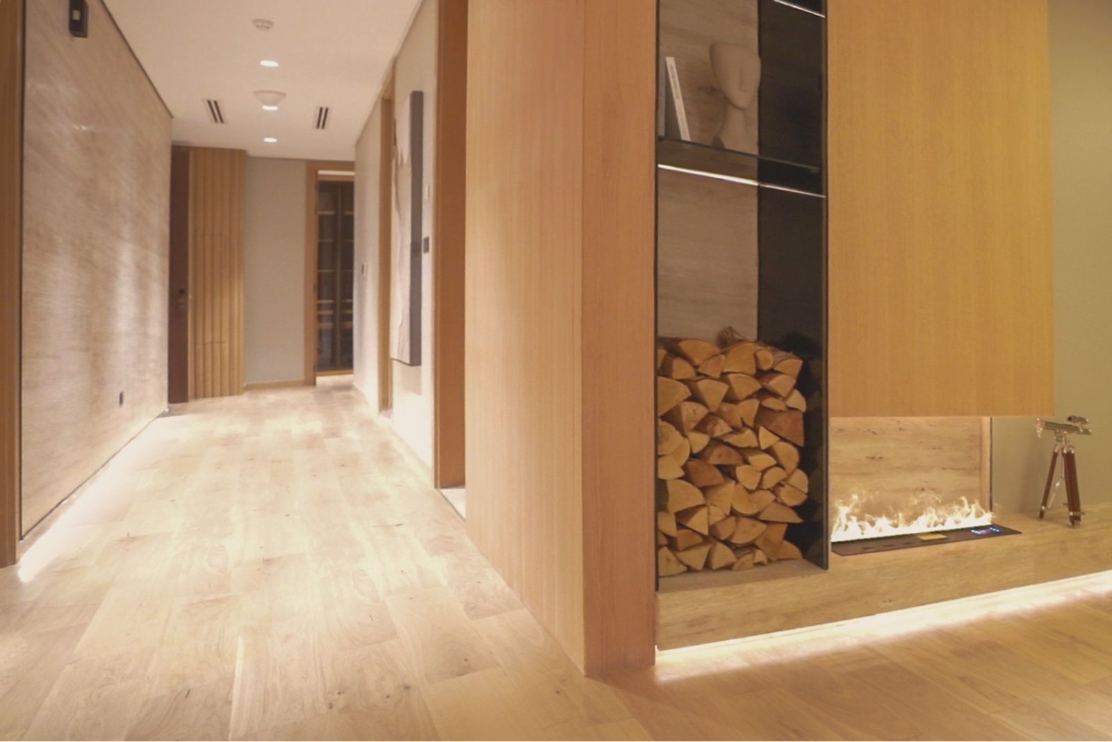 This classic villa has been transformed into a modern masterpiece, featuring unique elements like TV units, natural travertine bathrooms with hidden doors, and stylish wall finishes throughout.